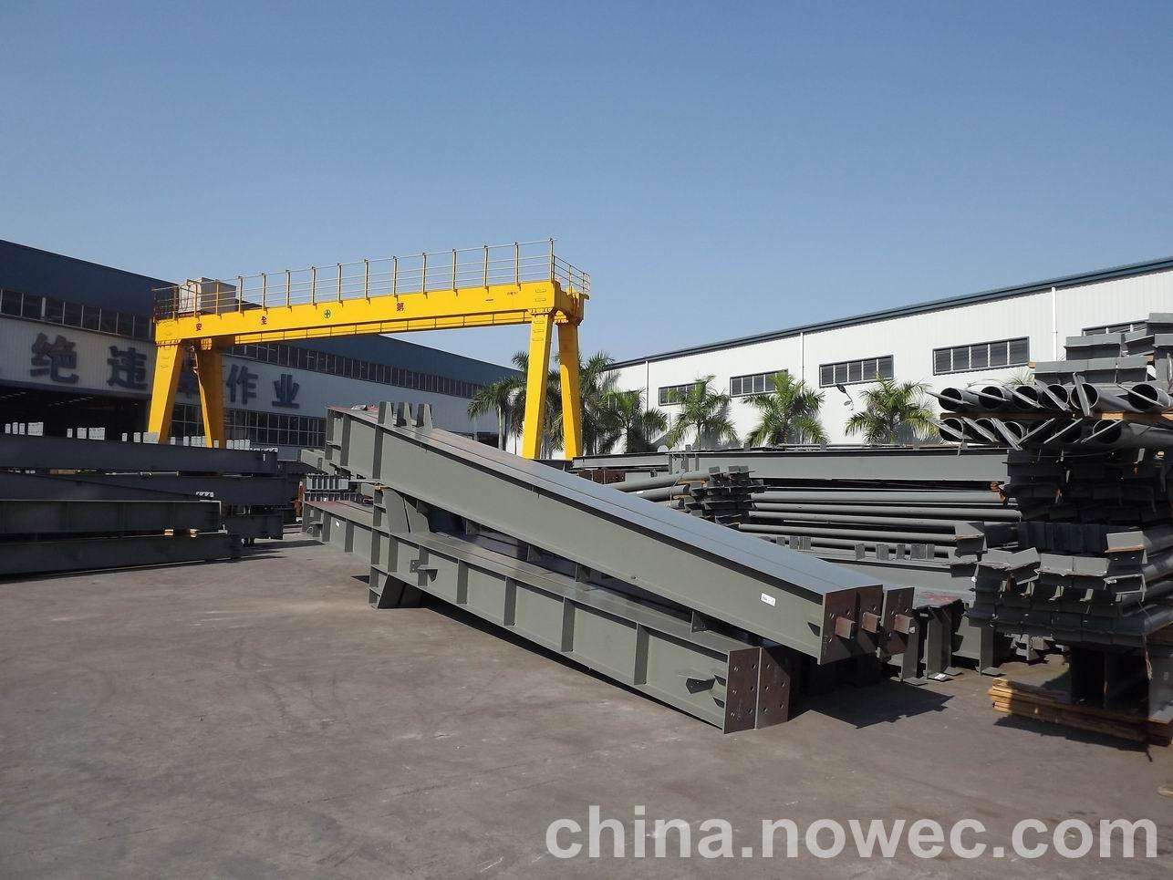 条状单元一般沿长跨方向分割,其宽度约为1~3个网格,其长度为l2或l2/2(l2为短跨跨距)。块状单元一般沿临沂网架平面纵横向分割成矩形或正方形单元。每个单元的重量以现有起重机能胜任为准。条(块)与条(块)之间可以直接拼装,也可空一网格在高空拼装。由于条(块)状单元是在地面拼装,因而高空作业量较高空散装法大为减少,拼装支架也减少很多,又能充分利用现有起重设备,故较经济。这种安装方法适用于分割后网架的钢度和受力状况改变较小的各类中小型网架,如两向正交正放四角锥、正放抽空四角锥等网架。